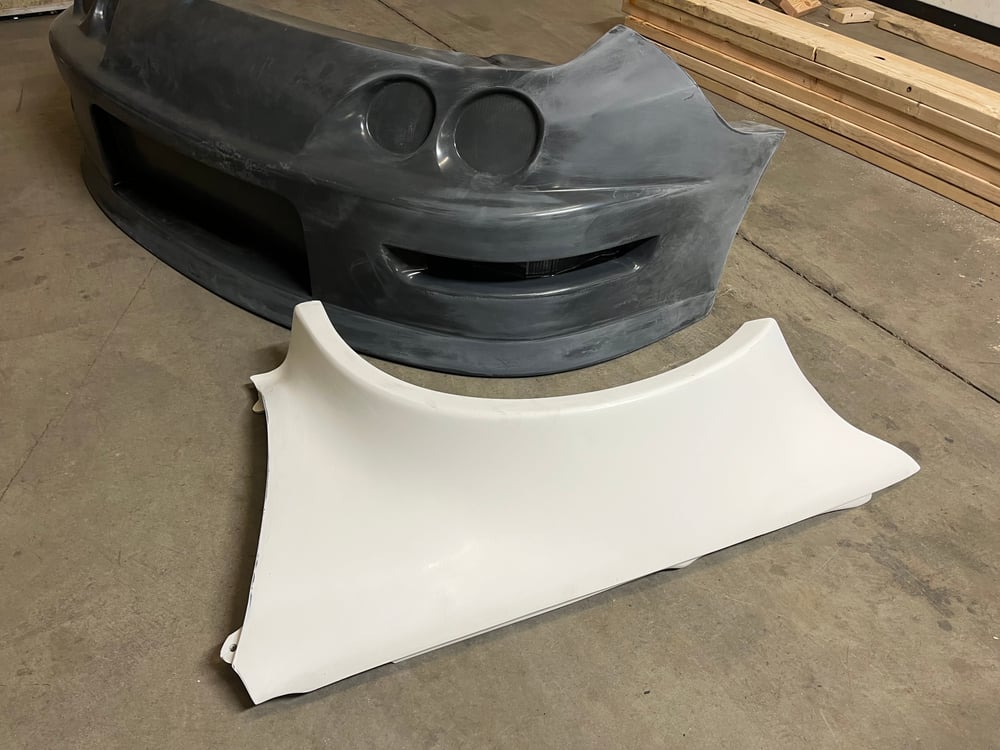 Most aftermarket front bumper covers — especially 3-piece front ends and widened fenders — will require a custom mounting solution. This is due to the near-infinite combinations of turbo manifolds, intercoolers, and radiator setups. A universal “one-size-fits-all” mounting system is not realistic.